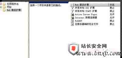 WEB服务扩展允许Active Server Pages(开启ASP程序支持)和Internet数据连接器,其余的需要什么功能才开启什么服务扩展。(如图)