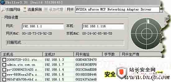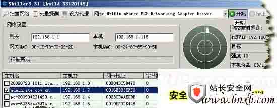 在公司局域网服务器上安装 Skiller 软件.打开 Skiller 软件界面如下(按“扫描网络”得到局域网在线主机列表)