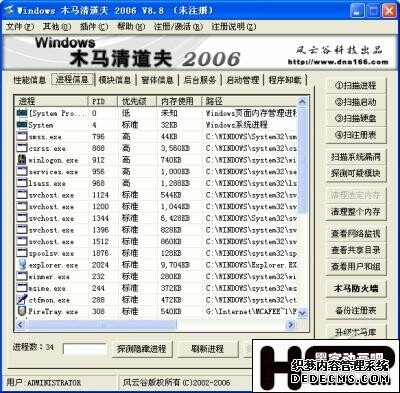 支持进程扫描、启动项扫描、硬盘扫描与注册表扫描。此外,利用相关插件,可以按需添加集成木马专杀工具。