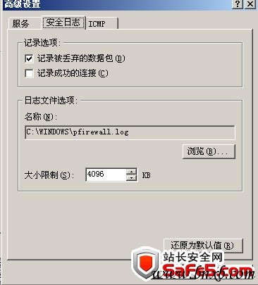如图4所示,选择要记录的项目,防火墙将记录相应的数据,日志默认在c:\windows\pfirewall.log,用记事本就可以打开看看。