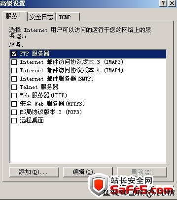 如图3所示,如果本机要开通相应的服务可选中该服务,本例选中了FTP服务,这样从其它机器就可FTP到本机,扫描本机可以发现21端口是开放的。可以按“添加”按钮增加相应的服务端口。