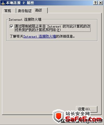 2、然后鼠标右键单击“本地连接”,选择“属性”,出现图1界面。如图选择“高级”选项,选中“Internet连接防火墙”,确定后防火墙即起了作用。