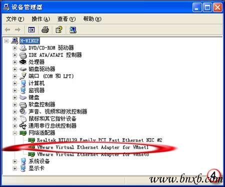 ⒍虚拟机上的以太网适配器。当您用新建虚拟机向导创建一台虚拟机时,不论您使用何种网络类型,哪种操作系统,VMware Workstation都会为你创建的虚拟机安装一个以太网适配器,该适配器在虚拟机操作系统中显示为“AMD PCNET PCI”(如图6),经过笔者测试,大多数的操作系统都能识别这个虚拟硬件并为之安装合适的驱动程序,该适配器为主机和虚拟机,虚拟机和虚拟机之间互相连 接提供了通讯接口。