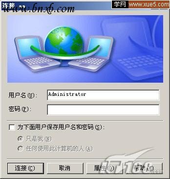 第二步:在“VPN服务器选择”窗口里,等待我们输入的是VPN服务端的固定内容,可以是固定IP,也可以是由花生壳软件解析出来的动态域名(此域名需要在提供花生壳软件的www.oray.net网站下载);接着出现的“可用连接”窗口保持“只是我使用”的默认选项;最后,为方便操作,可以勾选“在桌面上建立快捷方式”选项,单击完成即会先出现如下图所示的VPN连接窗口。输入访问VPN服务端合法帐户后的操作就跟XP下“远程桌面”功能一样了。连接成功后在右下角状态栏会有图标显示。