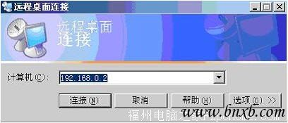 3)、建立完VPN连接后,可以通过WWW、FTP互相访问,也可通过终端服务等登录到这台机器上,进而访问局域网中的其它电脑。图24就是192.168.1.10在建立完VPN后直接利用远程桌面连接,登录到192.168.0.2的机器上的登录界面。