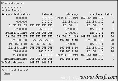 C:/>route add 192.168.0.0 mask 255.255.255.0 169.254.101.219