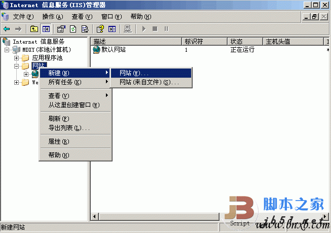 第1步,在“Internet信息服务(IIS)管理器”窗口中右键单击“网站”目录,依次选择“新建”→“网站”命令。打开“网站创建向导”对话框,在欢迎对话框中单击“下一步”按钮。