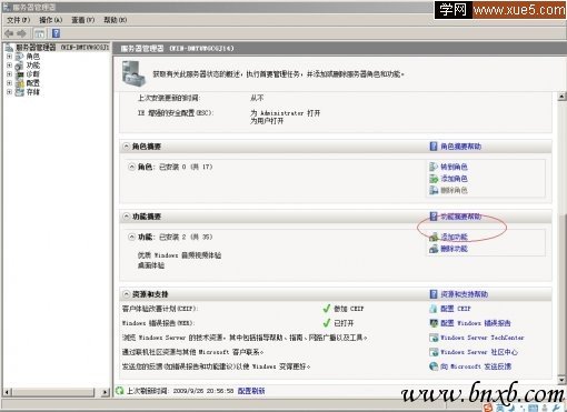 计算机右键→管理→服务器管理器→角色摘要→添加角色→服务器角色→Web服务器(IIS)。
