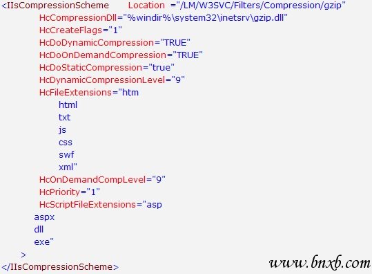 找到Location ="/LM/W3SVC/Filters/Compression/gzip用于设置gzip压缩,