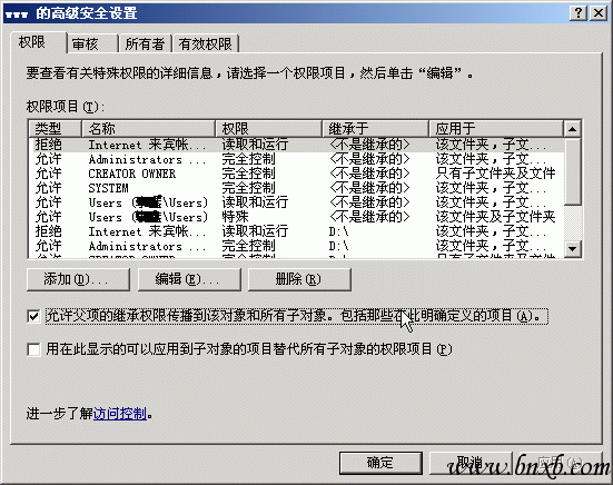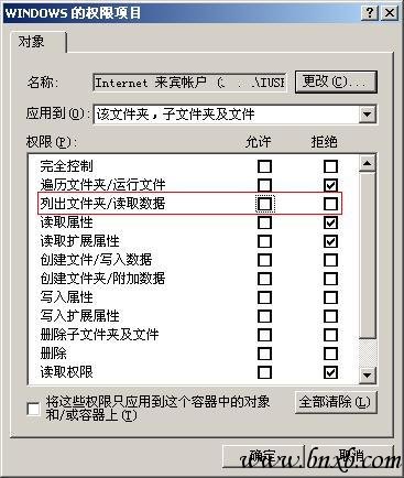 Windows或Winnt目录一定不要这样设置,否则在运行asp程序时:(动网除外,原因未知。)
