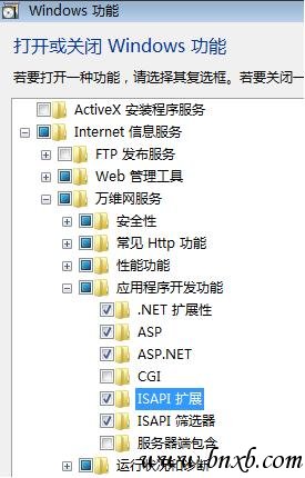 安装的步骤为:开始》控制面板》程序》打开或关闭Windows功能》Internet信息服务。IIS7安装时需要注意的是,如果需要ASP、ASP.NET等的支持,是需要把功能模块给装上的,默认是不安装的。