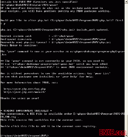 3、PEAR默认扩展包安装后,提示是否需要配置php.ini文件中的include_path选项指向pear的安装目录,当然需要配置,否则无法使用,Y并回车,安装包会自动修改include_path选项。