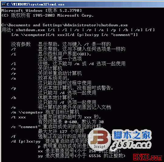第三步:默认不加参数是无法实现任何操作的,下面简单介绍下shutdown命令的常用参数。