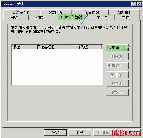 在弹出的窗口里选择“ISAPI筛选器”