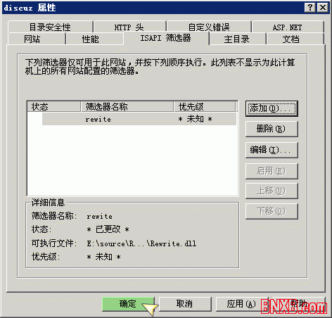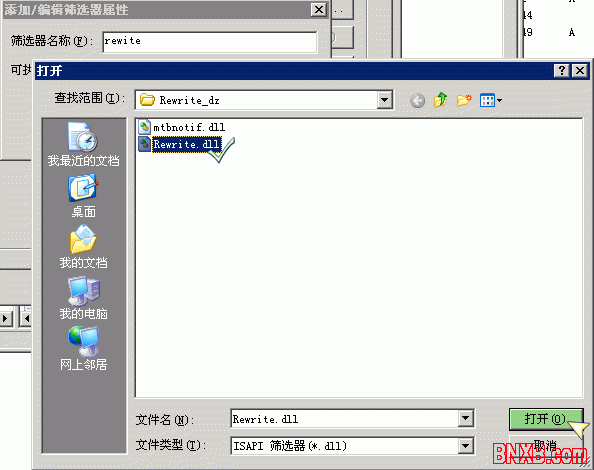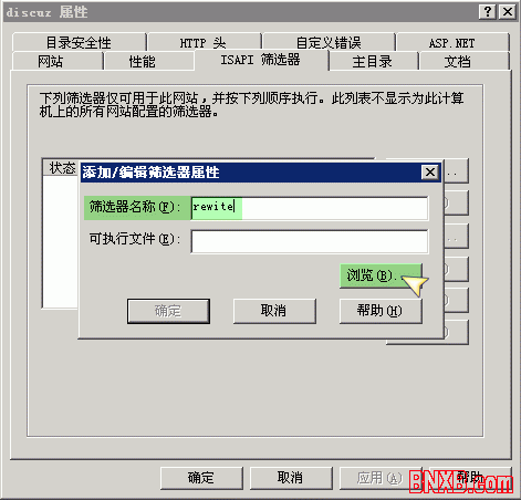 上图界面中点击“浏览”,选择下载解压后的 Discuz! Rewrite 规则目录下的 Rewrite.dll 文件