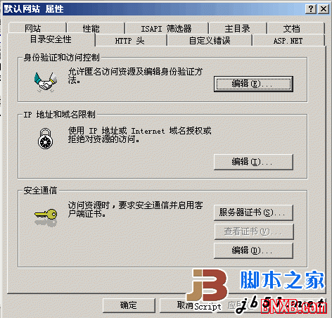 在需要设置的网站上 》 右键属性 》 目录安全性