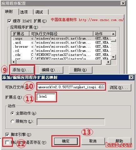 5.扩展名填写 .html (如果是 .htm 或者 任意你想要的扩展都可以 前提是以后的应用程序扩展列表里边没有该扩展)