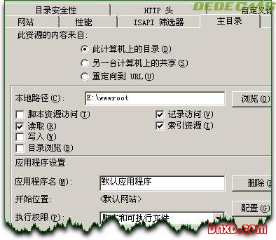 点击<属性> ,把本地路径修改为 E:\wwwroot目录,执行权限 修改为 脚本和可执行文件。