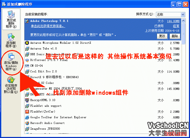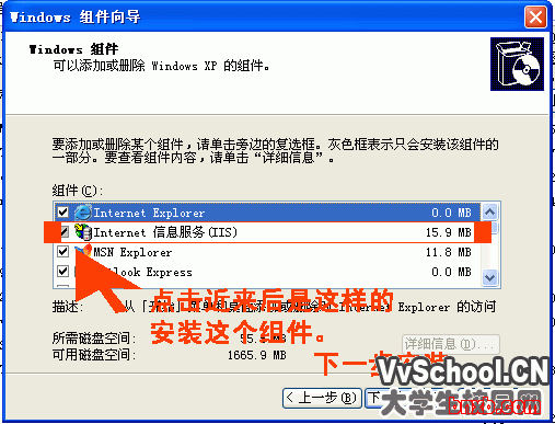 这一步可能出现:xp系统无法打开添加与删除windows组件的情况,点击这里解决。