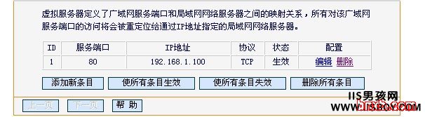 3、路由器里,相应的虚拟服务器功能映射到了本地IP;