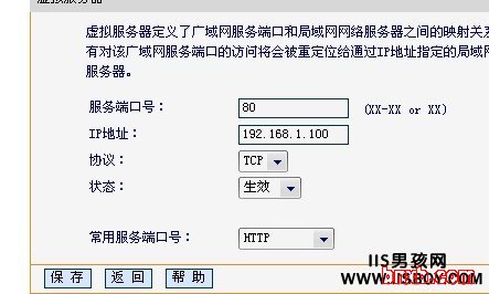得到IP后,虚拟服务器页--》常用服务端口号--》下拉选择:HTTP,然后自动填写好: