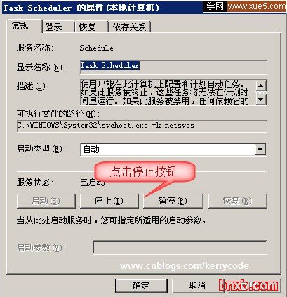 停止Task Scheduler(Window 2003下) 1:你可以在开始菜单——运行里面输入:services.msc 命令进入服务窗口,亦可以通过控制面板——管理工具——服务,进入服务,
