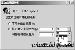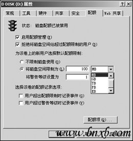 有趣的是,磁盘配额功能在共享及上传文件时都有效,即你的同事不管是在服务器上的共享文件夹中存放文件还是通过FTP来上传文件,所有的文件总尺寸都不能超过磁盘限额所规定的空间大小。