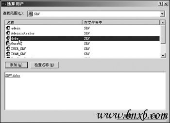 如果要让某一个用户使用更多的空间,就必须要单独指定了。操作步骤是:点击此窗口下方的“配额项”按钮,在弹出的窗口中点击“新建配额项”按钮,然后在新窗口中的“查找范围”一栏中选择这台文件服务器(本例中的服务器名称为SRV),然后在接着显示出的用户列表中选择一位同事的登录名,双击后添加。其他用户的添加方法也是一样,最后点击“确定”按钮完成;最后为这次添加的同事指定空间,例如:1GB。至此磁盘配额设置工作完成。