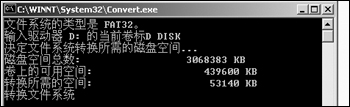 图1 使用Convert.exe命令将Fat32转换为NTFS分区格式