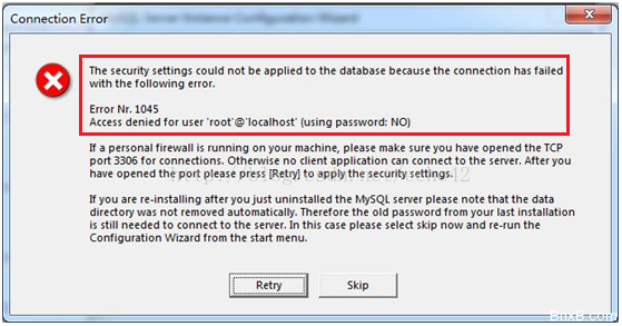 MYSQL安装最后一步出现MySQL 1045错误解决办法